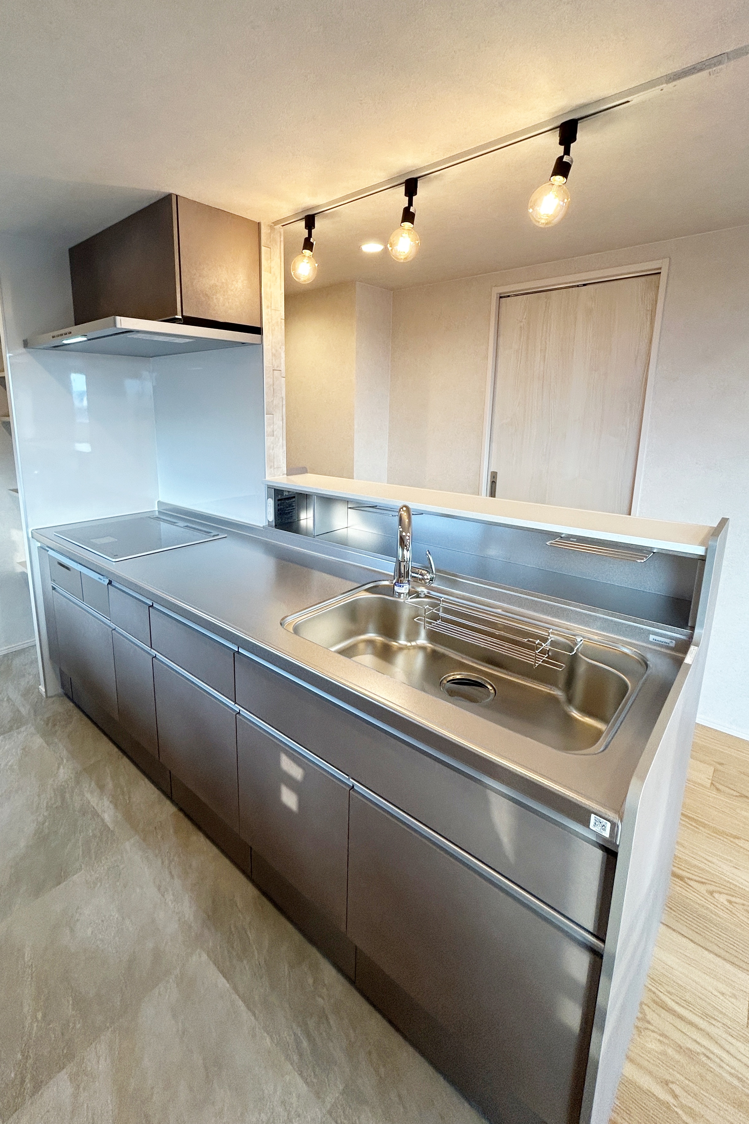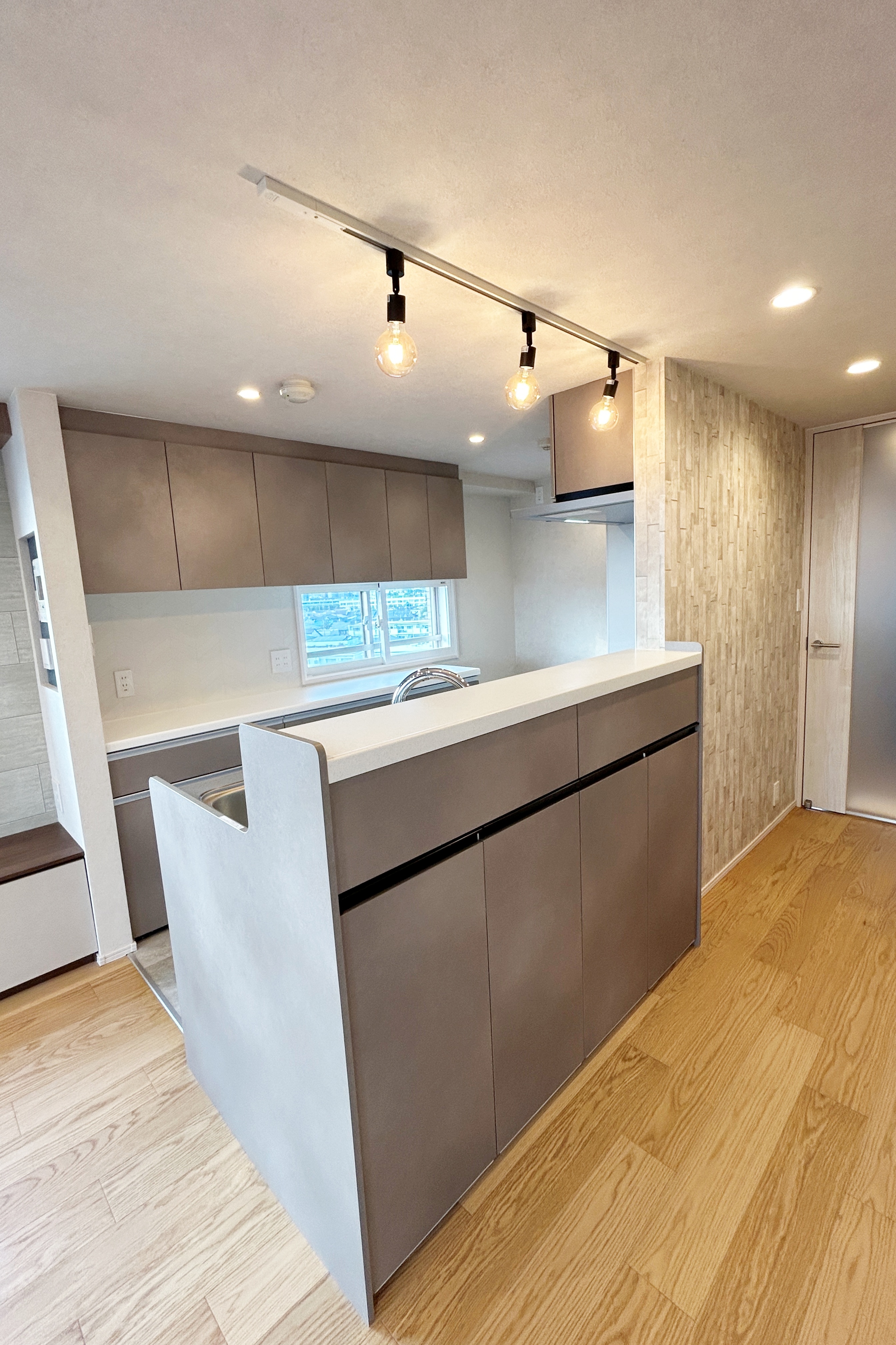 独立型だったキッチンは、リビングに向いた開放的な対面式キッチンへレイアウトを変更。