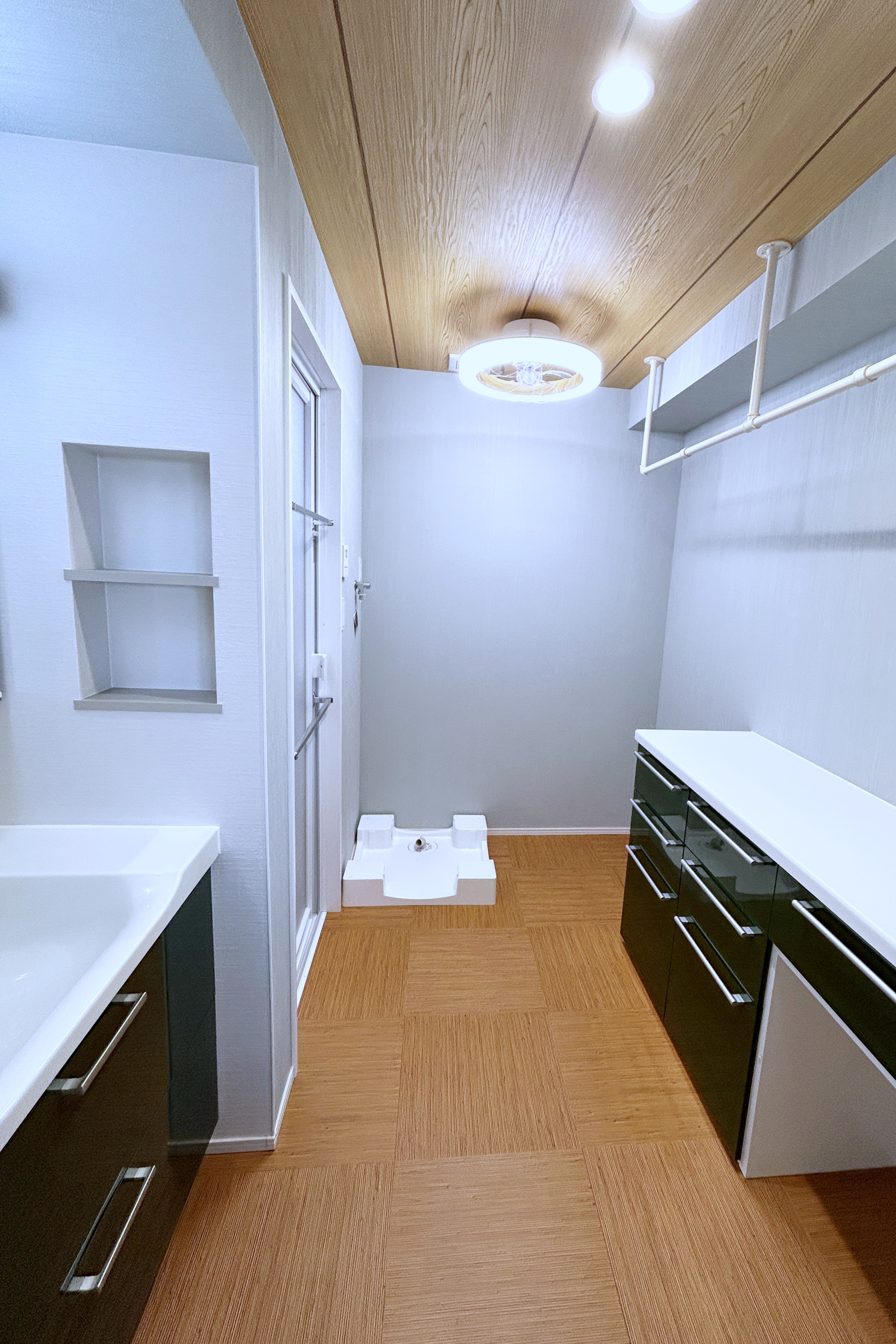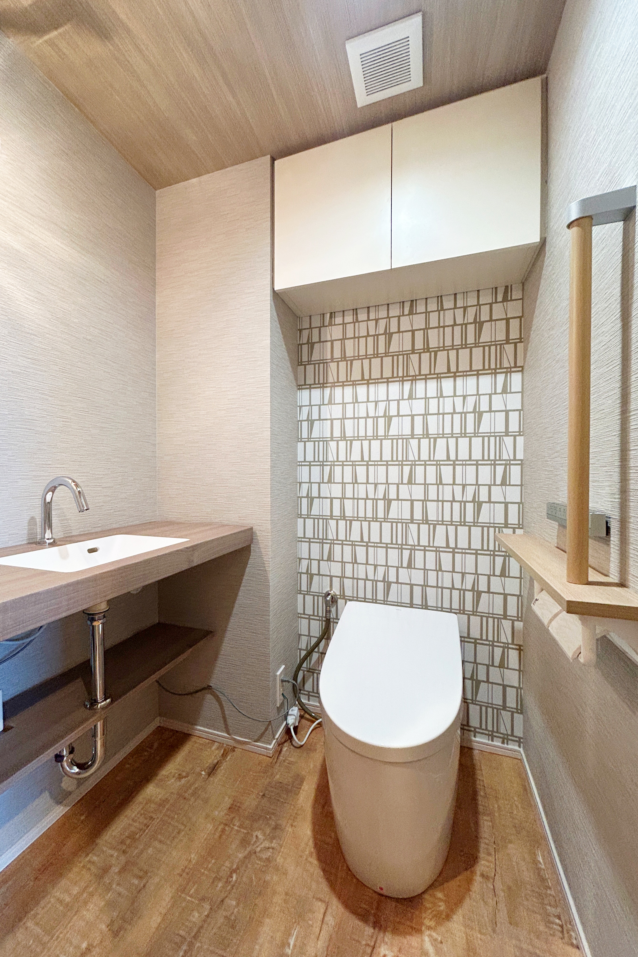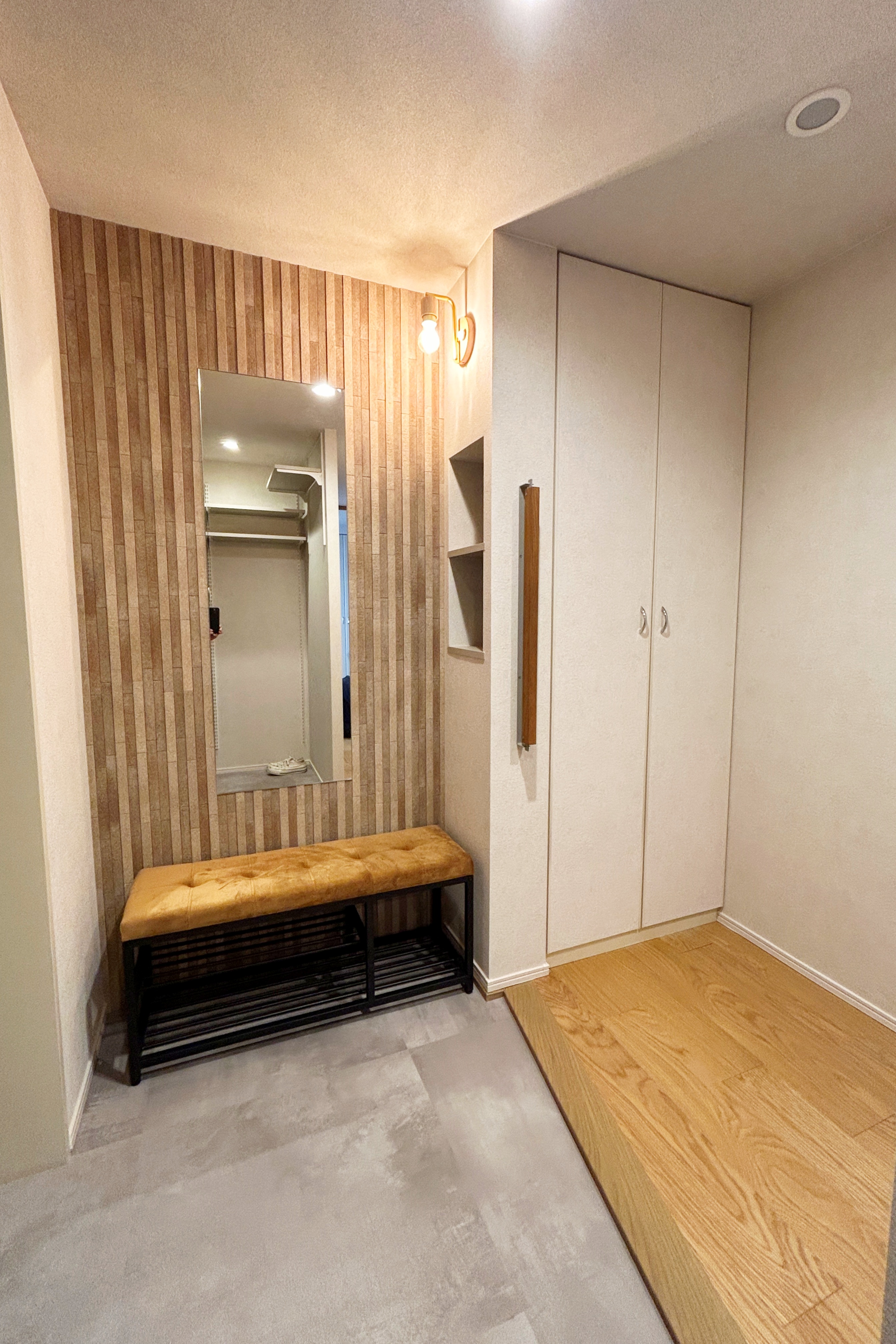 また、玄関にはエコカラットやニッチを設け、ベンチや手すりも新たに設置しました。意匠性だけでなく、動線や安全性にも配慮したプランとなっており、ご両親にも大変喜んでいただきました。
