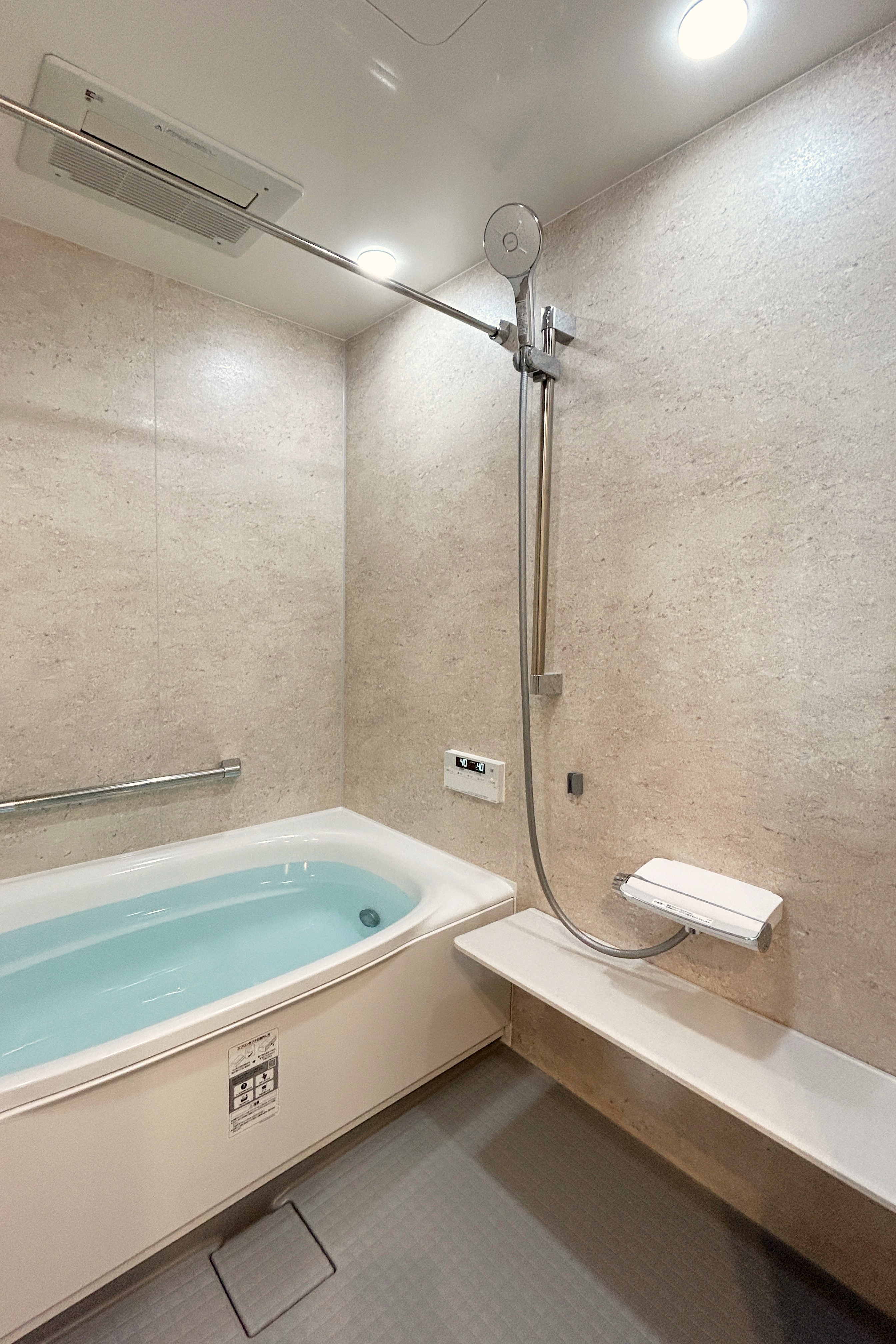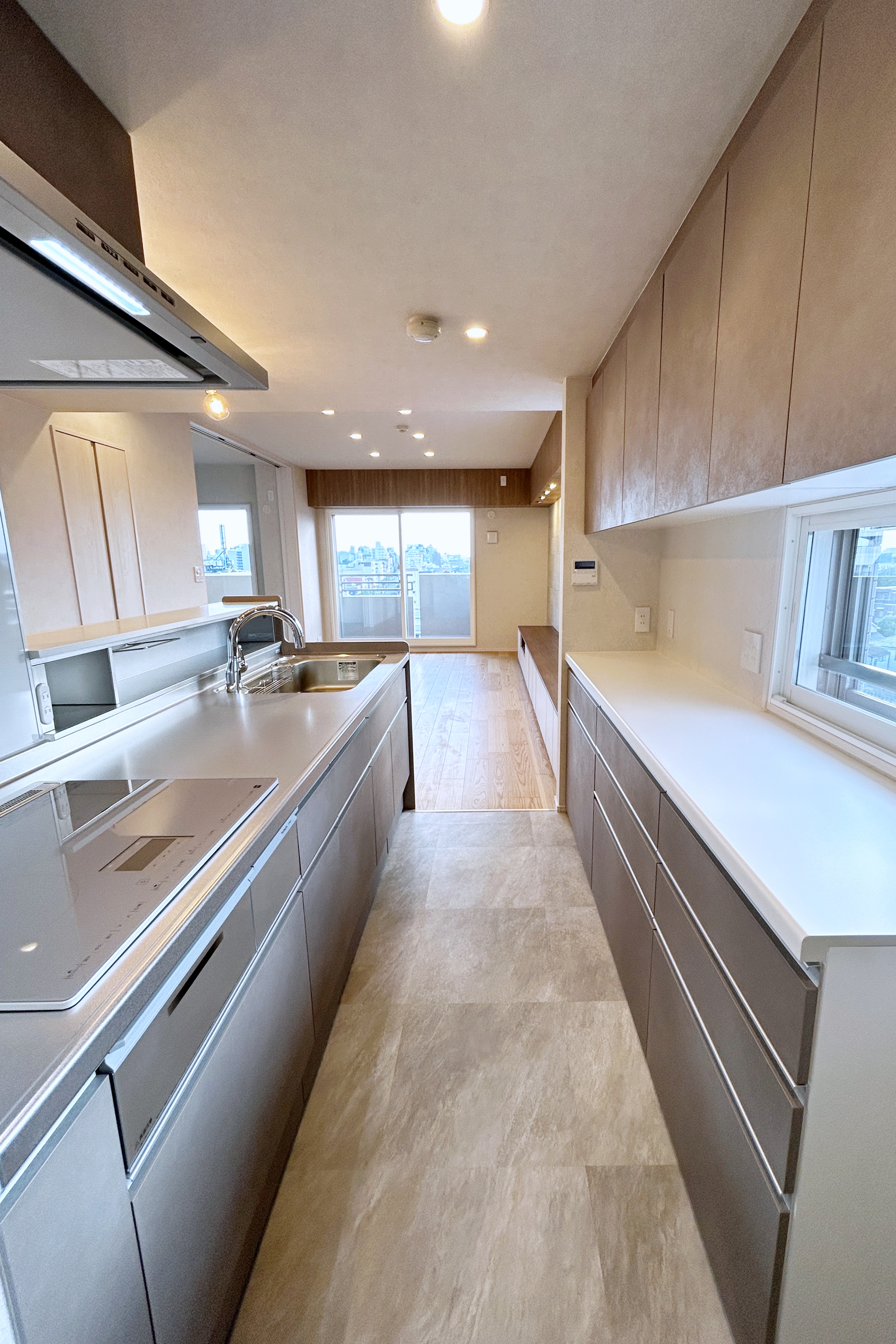 | 工事内容 | 間取り変更、フローリング貼替え、フロアタイル、内装クロス、エコカラット、内部建具交換、内窓設置、キッチン交換(位置移動)、浴室交換(位置移動)、給湯器交換、洗面台交換(位置移動)、便器交換(現状位置)、照明器具交換、床暖房 |
