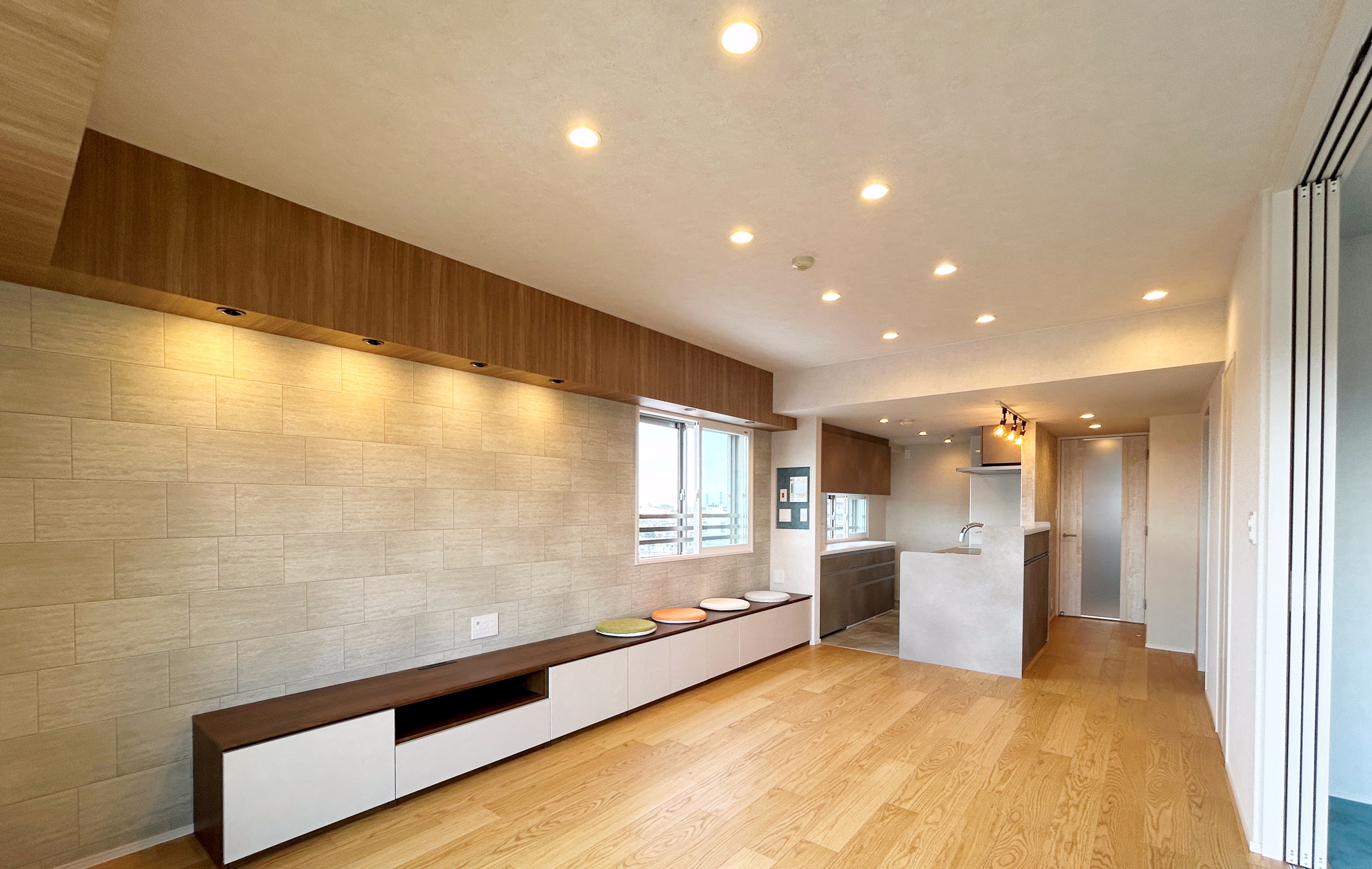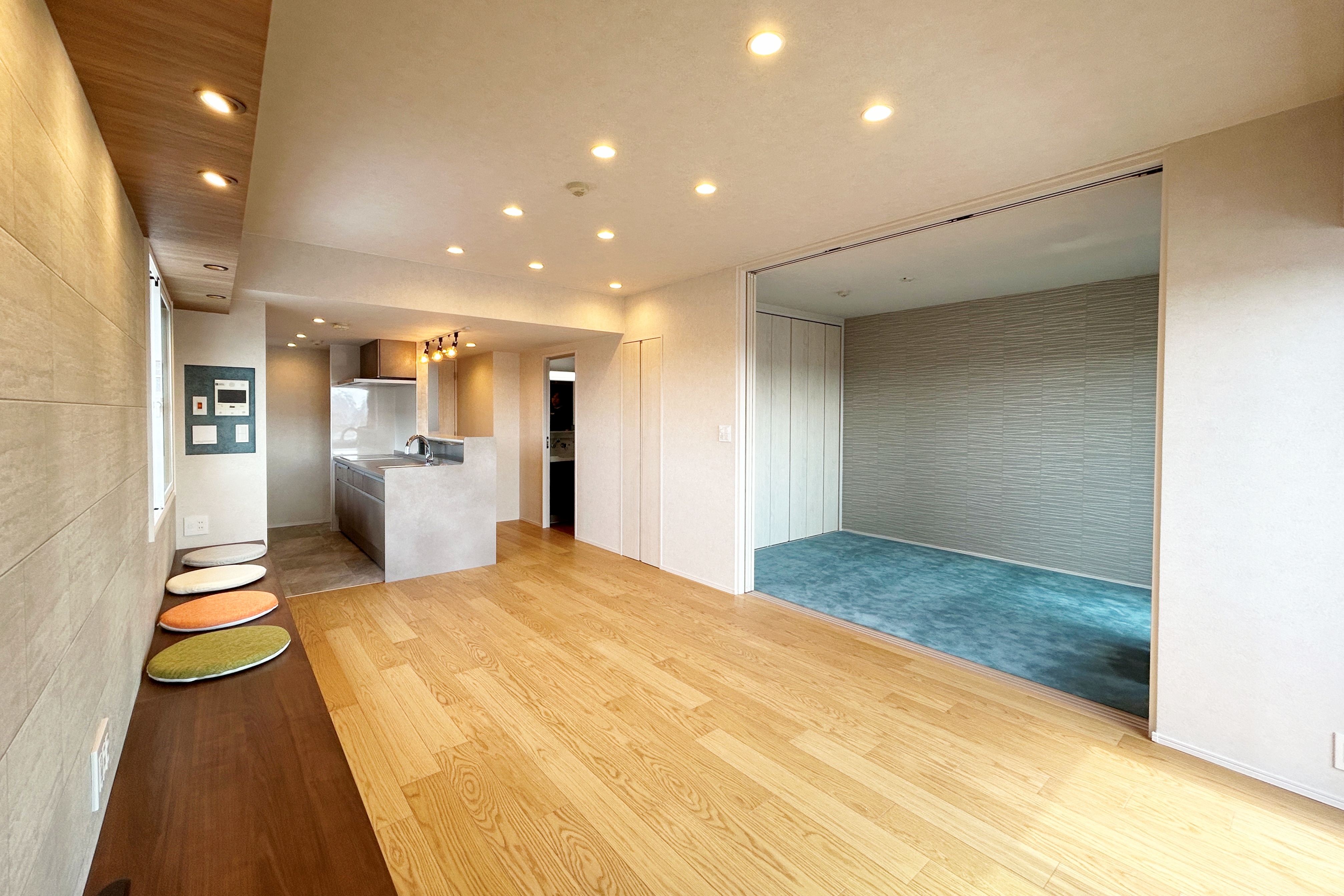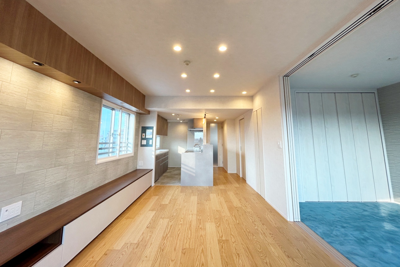 さらに、リビングと洋室を仕切っていた壁は開閉可能な3枚引戸へつくり替え、開放感あふれる空間になりました。
